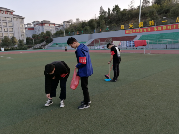 (志愿者正在操场清扫)